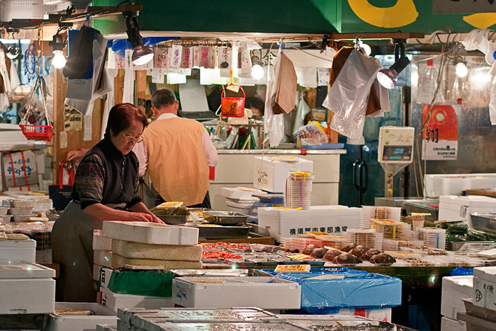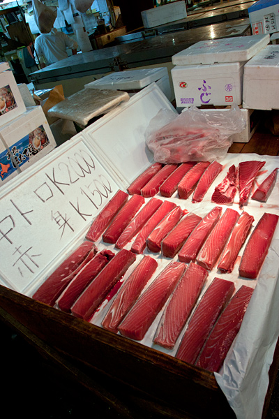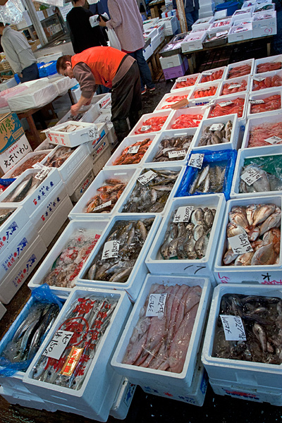 ). Nous nous rendons au marché aux poissons de Tsukiji, le plus grand marché de gros du monde. Il est situé au sud-est de Tokyo, à deux pas de Ginza, un quartier chic de Tokyo.