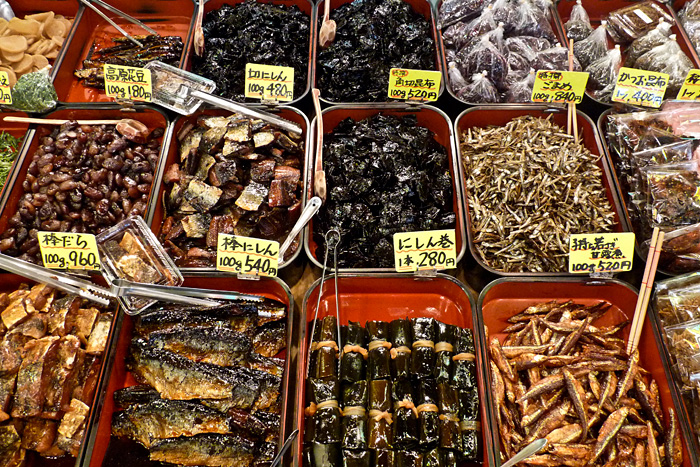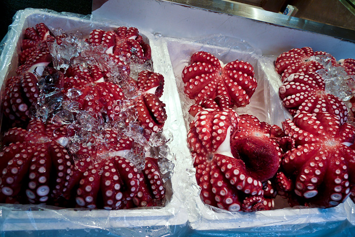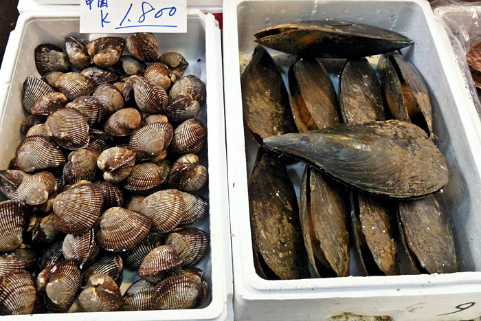 Poissons, coquillages, crustacés, algues, ici on trouve de tout. Les étals regorgent de produits classiques (thon, crevettes, crabes) et moins classiques (poulpes, calamars entiers), voire totalement inconnus de nous autres européens.