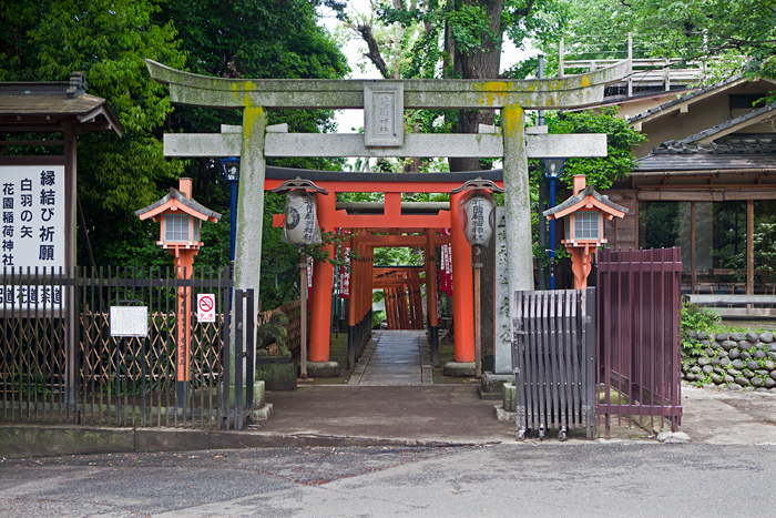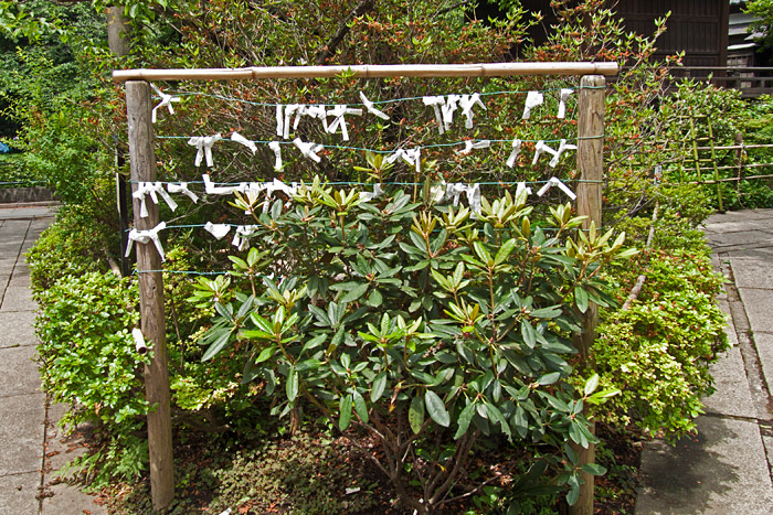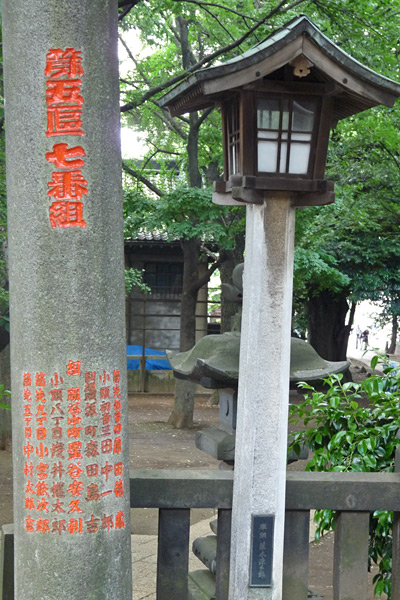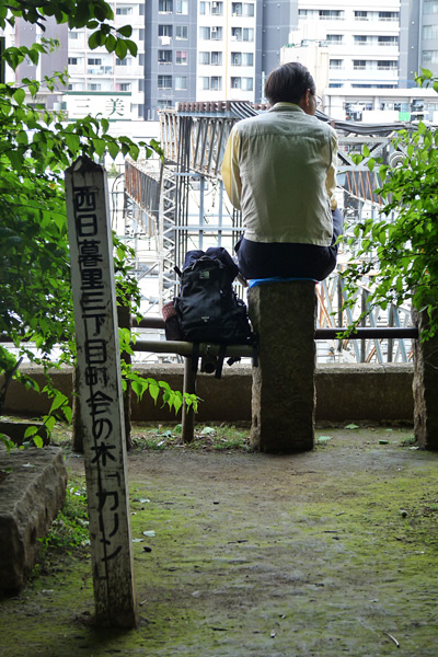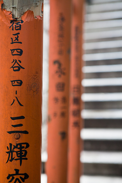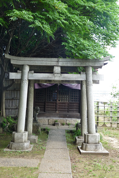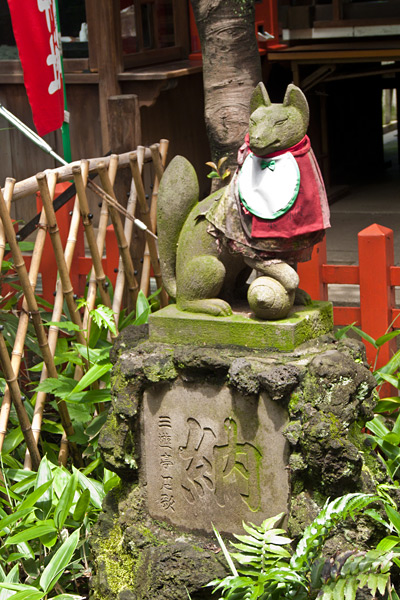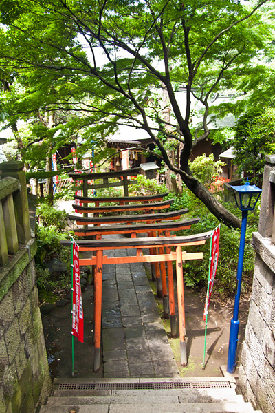 Ici, les torii sont en pierre. Ce petit temple surplombe la ville, ce qui donne une jolie vue de Tokyo.