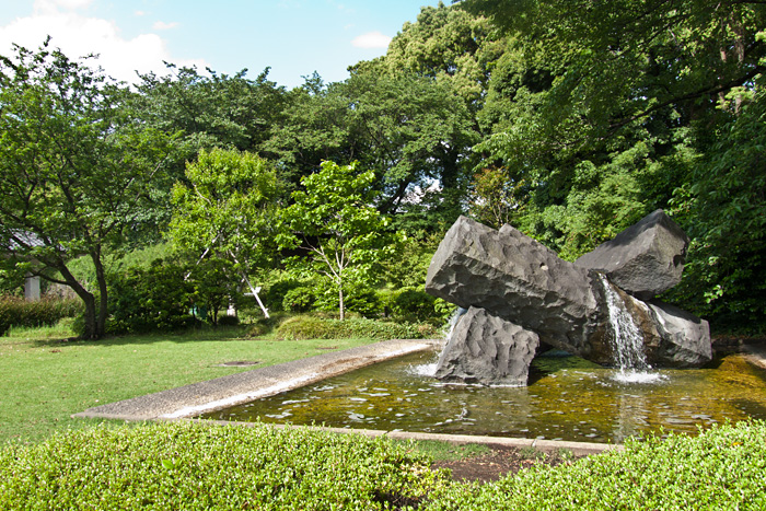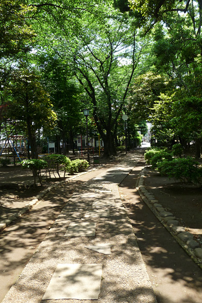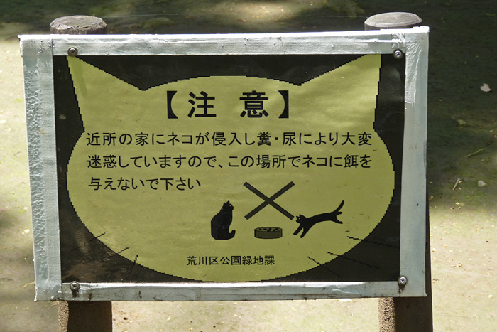 Après ce bon bain de foule, nous sommes partis nous promener dans le « Triangle d’or », situé entre les gares de Nippori, Nishi-Nippori et Sandagi, dans le quartier pittoresque de Yanaka. Nous avons commencé la balade par un joli mais commun petit parc, que l’on aurait très bien pu trouver à Paris, sauf qu’ici il y a des panneaux (en japonais) qui interdisent de nourrir les chats errants.
