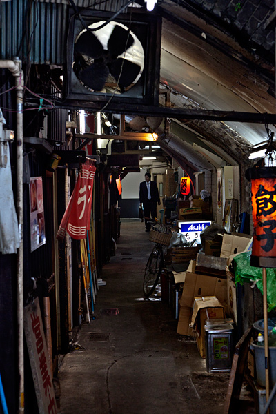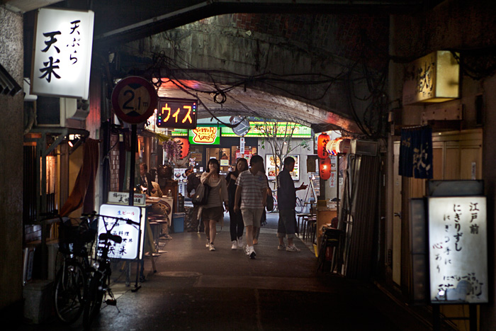 À deux pas de Ginza, nichés sous la voie ferrée, les petits restaurants de yakitori (brochettes grillées) de Yurakucho parfument l’air d’une délicieuse odeur de viande et de légumes grillés. La fumée des grills s’accumule dans les petits passages…